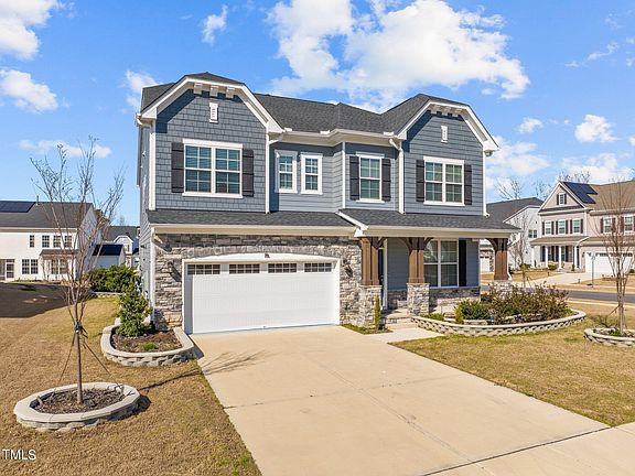 This stunning 3522 sqft Galvani II Plan with 5 bedrooms, an office/study room, and a media/bonus room offers luxurious living on a spacious 0.22 acre corner lot, flooded with natural light and boasting a large covered front porch, perfect for relaxing evenings. Open concept floor plan, featuring engineered hardwood flooring in the main living areas and crown molding throughout the entire first floor. The gourmet kitchen is a chef's delight, complete with a large island, gas cooktop, and a large walk-in pantry, along with a convenient Butler's Pantry. Immerse yourself in the refined elegance of the formal dining area, while also enjoying the cozy charm of a breakfast nook. With a guest suite on the main floor, this home is perfect for hosting guests. Additionally, there's a dedicated office room on the main floor for remote work or study. Upstairs Loft area and, plush carpeting awaits in the bedrooms with 9 feet ceiling, each equipped with its own walk-in closet for ample storage, while a large bonus/media room provides additional space for entertainment or relaxation. Bask in the serene ambiance of the primary bedroom's tray ceiling, complete with a cozy reading or relaxing nook area. Delight in the luxury of the primary bath, featuring dual sinks, a garden tub, and a separate shower, enhancing your comfort and relaxation. Experience the convenience of spacious his-and-her walk-in closets, ensuring both comfort and organization are effortlessly maintained. Plus, enjoy the energy efficiency and endless hot water supply provided by the tankless water heater. Step outside to the screened porch and professionally landscaped backyard, featuring a spacious concrete patio ideal for adding a gazebo or extending the sunroom, along with a concrete trash station and crafted stonework surrounding the entire home. This smart home is equipped with Samsung appliances, refrigerator, washer, and dryer, as well as smart technology features such as a Ring doorbell, Schlage smart Wi-Fi deadbolt, Level door automatic lock, and Flo water system (WiFi). Experience a fully finished garage with freshly painted walls and epoxy flooring. Conveniently located within walking distance to the pool, playground, and clubhouse/fitness center, and close to everything you need, this home offers the perfect blend of luxury, comfort, and convenience. Don't miss out on this incredible opportunity! Schedule your showing today!