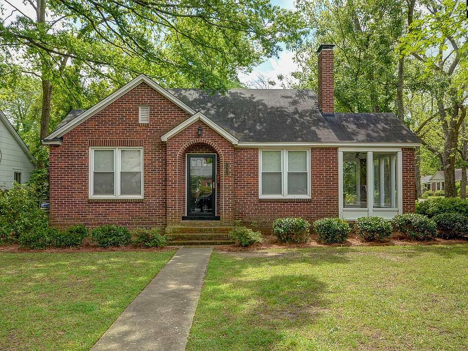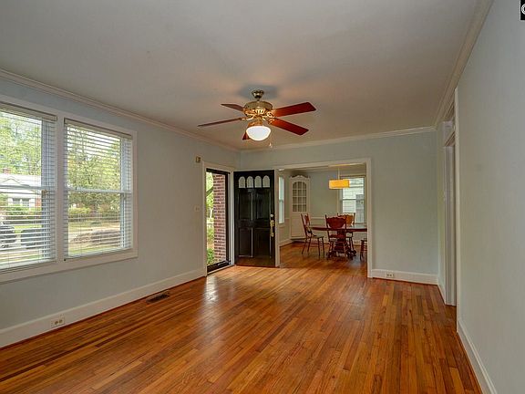 Come see this beautiful brick bungalow in the heart of Rosewood! Located on a corner lot within close proximity to shopping and dining on Rosewood Drive, Devine Street and Five Points, as well Publix, this charming 3 bedroom, 1 bathroom home is waiting for you! Boasting: a large living room with original hardwood floors, crown molding, an eye catching fireplace, and access to the sunroom; a formal dining room with hardwood floors, built-in hutches, and access to the kitchen; a galley kitchen with natural wood cabinets, black appliances and an adjacent laundry room. The three bedrooms each have original hardwood floors, large closets, crown molding and share the hallway bathroom. Don't miss the large, fully fenced in yard and storage shed!
