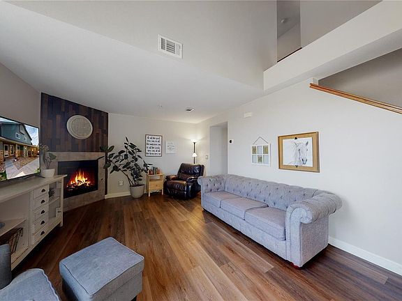 Privately set corner unit located in the back of the complex and backs up to a large grassy field. The large living room is warm and inviting centered by a gas fireplace and siding glass door leading out to the covered patio. A quaint kitchen that flows into the dining room, where you'll find a breakfast bar, and spacious pantry. Both upstairs bedrooms have large walk-in closets. Updated vanity with granite counters, and an upper level laundry closet! The clubhouse, outdoor pool, playground and nearby walking trails make make this home an owner's retreat! You'll appreciate the newly painted interior, carpet and laminate flooring throughout home, newer roof, furnace and windows! Easy access to shopping, restaurants, Interstate and State Highways! Single detached garage is very near proximity to condo. Showings start Friday 4/22/22. Book your showing today!