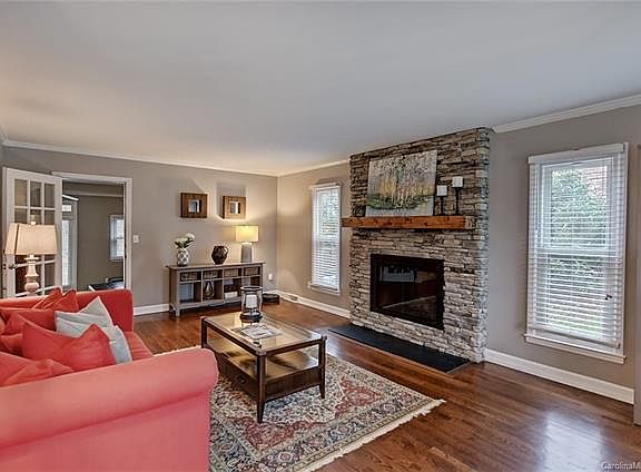 Charming House with excellent curb appeal in the Olde Providence/Carmel/Myers Park school district! Pretty fiber cement exterior with a wonderful rear wrap-around covered porch and deck overlooking a flat, fenced yard. Hard to find- 4 bedrooms with 3 full baths and 1 half bath. The master bedroom suite is special and spacious with a vaulted ceiling, bathroom, and a walk-in closet. Kitchen updated with white granite and light cabinets. Hardwood floors throughout the main floor and upstairs hallway and master bedroom. Plenty of room for living, entertaining and play with a large dining room, family room, and a big bonus room on the main floor. Driveway with turn-around. Storage shed/workshop with electricity. Security system. Wink Smart House. AT&T fiber.