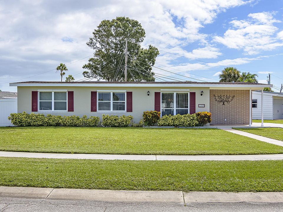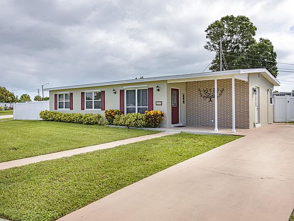 View 3D and floor plan! Exceptionally charming CORNER LOT home w/fantastic curb appeal! This beautifully updated home offers smart upgrades, a neat kitchen showcases gorgeous wood cabinets, black & SS appliances, quartz countertops, breakfast bar & stylish hardware! Spacious inside laundry w/storage cabinets! Large updated windows bring light to all rooms. Laminate flooring covers the great room & dining room accented by neutral colored walls. Exquisite Glass French doors off the great room leadinto a welcoming screened in porch w/decorative tile work overlooking the vinyl fenced in backyard, ideal for big barbecues, kid play! Also, new AC installed in 18, and large shed stays! 2.5 mi to Turkey Creek Sanctuary, less than a mile from Goode Park Boat Ramp, & 2 min US1! City water & No HOA!