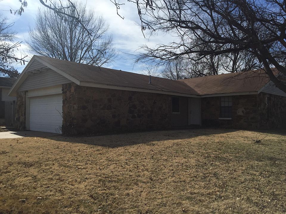 3 bedroom 2 bath corner lot house in the Broken Arrow School district. Privacy fence. fireplace, central heat and air. Vaulted ceiling with ceiling fans in all the rooms. 2 car oversized garage. Ready to move in. one year lease, renter is responsible for all utilities. Negotiable pet deposit