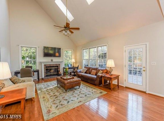 Perfectly set on a private homesite, this home offers rich hardwoods throughout main level & formal living & dining rooms. Open KIT w/sleek granite, tile backsplash, island w/breakfast bar, SS appls & breakfast room overlooking family room w/vaulted ceiling & skylight, wood burning FP & access to deck w/tree-lined view. FIN LL w/rec room, walkout, games, library nook & storage. Welcome home!