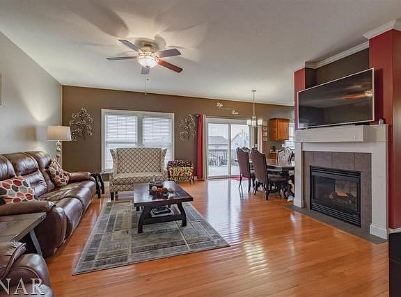 Fabulous zero-lot in Eagles Landing! Move right in! See through gas fireplace between living room and kitchen! Some stone on the exterior of the building. Three spacious bedrooms up and laundry up as well. Family room down has carpet and is dry-walled. Rough-in for a bathroom and an egress window is down as well. Nice hardwood floors throughout first floor. Make this your new home!
