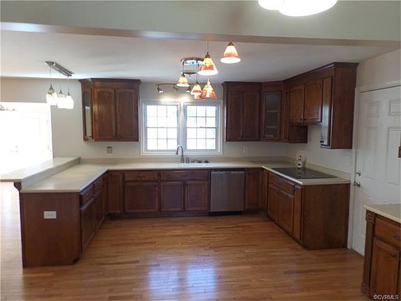 Beautiful brick rancher on a corner lot with a huge kitchen and more kitchen cabinets then I've ever seen in a house this size and a attached 2 car garage and detached 2 car garage. The kitchen comes with a refrigerator, microwave, dishwasher, cook top & double wall oven. This home also features a room that could be a formal dining room or formal living room, lots of hardwood floors and a updated full master bathroom and updated full hall bathroom. All 3 of the bedrooms have carpet (with hardwood floors underneath) & ceiling fans and there is a laundry room with washer & dryer hook ups, cabinets & counter tops off of the hallway near the bedrooms. Entering the back door there is a large family room with a fireplace and off of this room is the rear deck over looking the back yard. There are 2 natural gas ventless fireplaces and 2 floored attics for added storage. To the left of the house in the backyard is parking for a boat or RV. The detached garage is 24x24 and has a room that is heated & cooled and could be a work out room, man cave, etc. There is a attached shed on the back side of the detached garage. The rear concrete driveway takes you to both garages and to the back door.