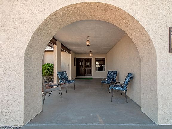 Don't miss this adorable, well maintained 3 bedroom home conveniently located in Rio Rancho, close to everything! This home has great potential for side yard access & no HOA. Impressive curb appeal on this corner lot. Greet guests under the expansive covered front porch area. Once inside, Kitchen has plenty of cabinets & counter space including an island to prep meals. There's an informal dining space adjacent to kitchen w a wet bar & another formal dining space that could serve as 2nd living space/family room w an enclosed sunroom (not incl. in sq footage). Living room boosts a beautiful brick fireplace & plenty of room for entertaining guests. The large owner's suite has double doors to enter & a large en suite bath. 2 additional bedrooms & full bath. Huge laundry room w wash sink
