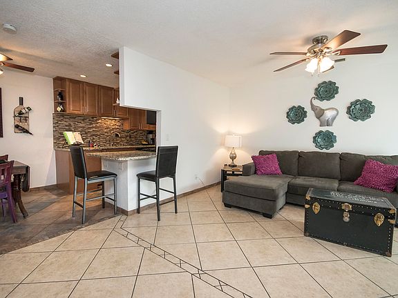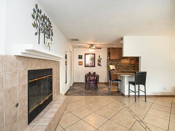 Take in the gorgeous views of the Sandia Mountains from this Vista Del Rey condo! This home features a fantastic upgraded kitchen with upgraded cabinets, granite countertops, tile backsplash and stainless steel appliances. Floor plan features 3 bedrooms and 2.5 baths, direct access to garage from the house, open living room with tile floors and a wood burning fireplace! All carpet was replaced by nice laminate flooring on stairs and bedrooms. * Tankless water heater * Water Softener * New Refrigerated air Unit added in 2017! This home has been exquisitely maintained and along with the well manicured grounds cared for by the HOA, this condo is a gem in the foothills!
