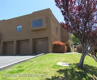 Quick access to trails and the breathtaking views from this foothills condo perched high in the NE Heights make this an outdoor enthusiast's delight! Bedrooms are light and bright on the second floor, with living, dining and kitchen on the main level. Beautifully maintained condominium community of Vista del Rey has an HOA that covers exterior, water, sewer and refuse. Private entrance, private garage, and private covered patio included! Refrigerated air and cozy gas-log fireplace provide year-round comfort. NEW garage door opener w/keypad. Easy access to both I-40 and Paseo del Norte via Tramway Blvd.
