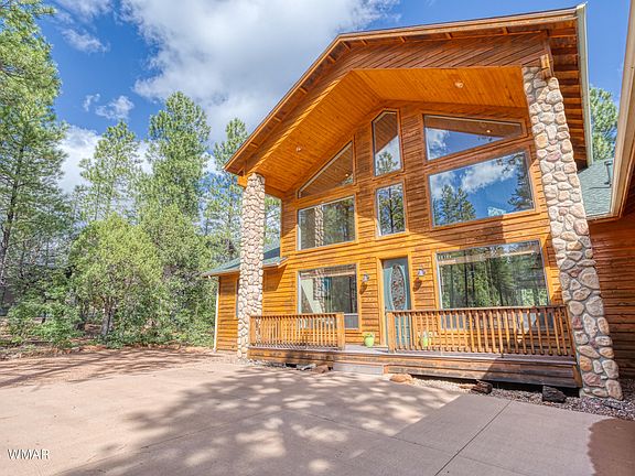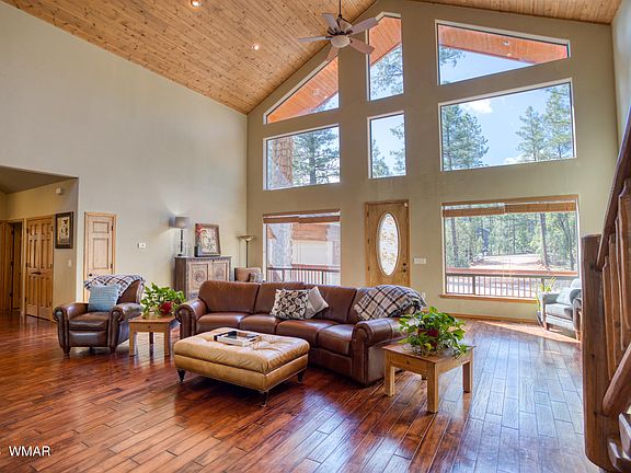 Nestled in the cool pines and fresh mountain air is where you will find your turnkey FULLY FURNISHED oasis from the valley or your new mountain forever home. This unique 2,600 sqft 3 bed, 2 bath home with a loft comes on almost an acre of land of mature towering trees located right on the links beside the 6th hole of Torreon's Cabin course. Plenty of room to store all your toys with this oversized epoxy floored 2.5 car attached garage. This home comes fully furnished with everything you need to immediately enjoy your new life in the high country. This home has recently received a brand new 40 year roof along with fresh stained rare REAL wood siding and interior paint making for an immaculate retreat.... You will marvel at the tongue and groove 24' vaulted ceilings with huge windows while enjoying the floor to ceiling downstairs stone fireplace. Along with beautiful REAL hardwood floors, rustic timber staircase and railing. The large backyard porch has a full size gas fireplace to go along with the exceptional views of the heavily treed lot and golf course. The upstairs loft also has incredible views and another full size stone fireplace giving the sense of a warm cozy cabin throughout the home. Nestled in what seems set apart yet very close to all the shopping and town amenities you would want. Torreon blends the luxurious style of a private club living with the small-town charm of a mountain hideaway. Feel very secure with a private gated entrance and 24 hour security guard service. Torreon residents can enjoy the 36 hole golf course, gorgeous clubhouse, swimming pool, spa, brand new gym, hiking trails, pickleball/tennis courts, family game center, fishing pond, equestrian center, onsite restaurants and bars, basketball/volleyball courts, and children's playground, as well as many other amenities this home and community has to offer.