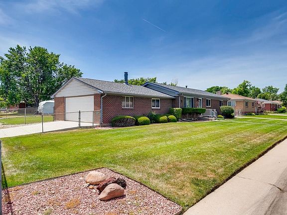 Brick mid-century ranch home, 5 BD 2 BA 2Car, new carpet/w workbench, 2/RVBoat Parking spaces, in a quiet neighborhood. Hardwood on main level, new windows, new AC, new roof, newer furnace. Apartment in basement with 2 non-conforming bedrooms/familyroom/kitchen/laundry/storage and new carpet. Plenty of room for parking, perennials, beautiful lawn on large corner lot. Steps away from Centennial Park Pond with walking trails and 2 ball diamonds. 1 Block to RTD Bus, 4 Blocks to Shopping, Restaurants. Light Rail 5 Minutes away, Oxford/Santa Fe or Littleton DT.