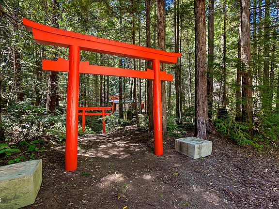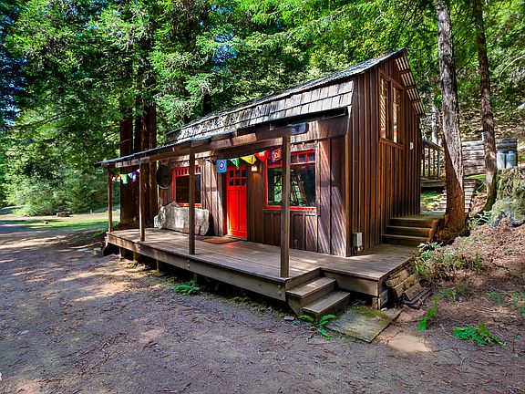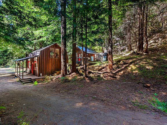 Welcome to Calm Chi, a serene and secluded park-like property by the spring fed headwaters of Marsh Creek. Hand-crafted Japanese Torii Gates lead you across a bridge over the creek to the crown jewel of the property, a spacious and versatile 400 SQ foot open building with views of mature redwoods. There are two cabins and a well-appointed bathhouse built from wood sourced and milled on-site. Multiple springs provide year-round water. Tent platforms and a tipi complete the scene. End of road privacy.