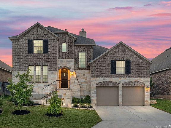 Highland Homes built 4 bed, 3 bath w/ study backing up to privacy awaits its new owners. Open floor plan with high ceilings. Kitchen is a chef's dream w/ gas cooking, granite counters, and large center island. Secondary bedroom downstairs. Large master bedroom w/ spa like master bath. Upstairs provides 2 additional bedrooms, XL loft/gameroom, and media room. Oversized backyard sits on a greenbelt and is flat, private and perfect for entertaining. 3 car tandem garage. Award winning Boerne ISD.