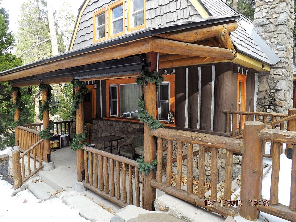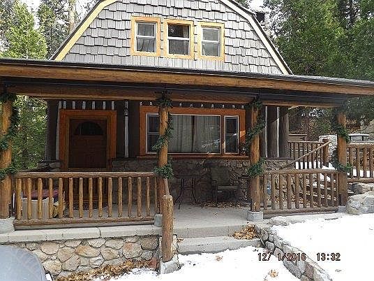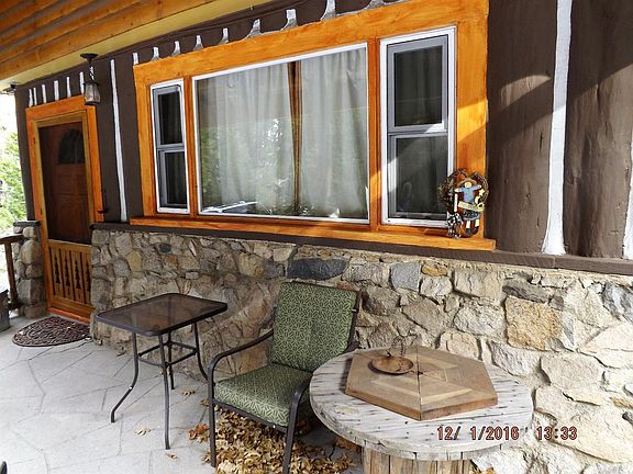 good looking mountain cabin that comes furnished. Has a life time roof ,tankless water heater, patio with smoker/bbq and trex decking. the lot in the back is included so you have about 10,000 sq.ft. lot. paved drive way artificial grass so low maintance. there are fruit trees by the patio.