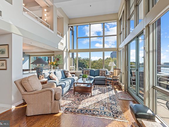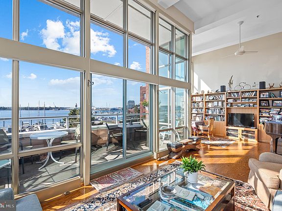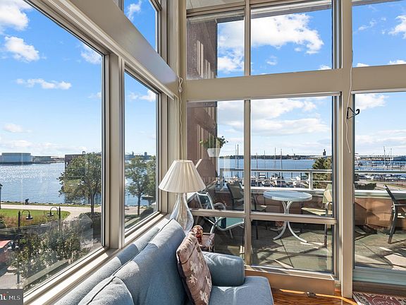 Wake each morning to the breathtaking water views from this rarely available large 2460 sq ft corner unit with double height floor to ceiling windows, 2 large balconies, and the primary bedroom suite on main level. 3 bed/2.5 bath condo in Canton's Premiere Waterfront Building - Canton Cove. Spacious living area with access to balcony, dining room with built in serving area and cabinet storage plus access to the 2nd balcony makes for perfect entertaining. Pass through kitchen with waterfront views makes washing dishes a dream. Bedrooms 2 & 3 are up one level, both with spectacular water views, along with the 2nd full bath, laundry room & plenty of storage. Garage space I-14 included. Enjoy the ease of life in this secure elevator building offering a 24-hour desk, meeting room, terraced gardens and a roof deck with panoramic 360 degree views of Baltimore's harbor and skyline. Canton Cove is located next to the Canton Waterfront Park and a water taxi stop. It's just a short walk to restaurants, shops, banks, library, groceries, dog park, gym/pools and a short distance to Canton Square, Fells Point, the Inner Harbor, the JHU medical campus, and to interstate 95.