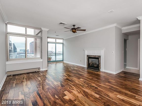 Fantastic waterfront condo -- recently renovated, 2 BR, 2 spa-like baths, gas fireplace, new flooring throughout, updated kitchen, stunning views of Canton waterfront from balcony with sliding doors off living room & master bedroom, 2 assigned parking spots -1 garage & 1 uncovered, extra storage area.Gas & water included in CC fee. Close to Canton Crossing, Canton Square, & Canton Waterfront Park.