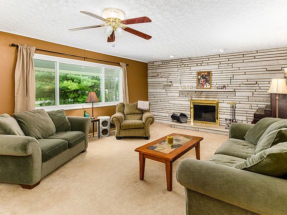 Charming ranch home that sits on close to an acre lot. A spacious home that offers a 25ft living room with a huge picture window and wood burning fireplace. The eat-in kitchen has been updated with granite countertops, a passthrough counter, and offers a bay window. Recent updates include New furnace & A/C-2019, additional insulation added to attic, exterior walls, and crawl space-2015. New living room picture window, New kitchen bay window, & New bath windows-2016 There are 3 good size bedrooms and 2.5 baths. 1st floor laundry room that boast cabinetry and laundry tub. The basement has been water proofed and includes a rec-room plus an ample storage area. The exterior of the home offers 2 covered porches plus a screened in porch.