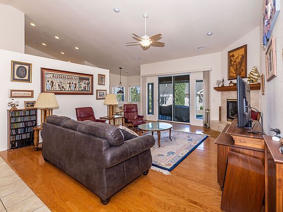 Great single level, 3 bedroom, 2 bathroom home in desirable Prescott Lakes, just minutes from down town and all its amenities. Easy care beautiful landscaping both in front and back yards. Views of Granite Mountain, San Francisco Peaks and Williams Mountain from your spacious covered patio. Living room and dinning room feature hard wood floors and cozy fireplace. Family size kitchen with center island, cabinets galore and a walk in pantry. Great size master suite and master bathroom with both shower and jetted garden tub. Large laundry room with utility sink and storage cabinets lead to an over sized 2 car garage with workshop area and also built in storage cabinets.