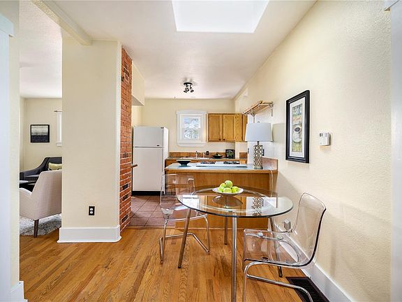 This turn-of-the-century 2 bedroom, 1.5 bath brick bungalow is a great starter home on a large, flat corner lot in Wheat Ridge just 3 blocks from NW Denver. The location is super close to Sloans Lake, Edgewater, and 38th Ave in Wheat Ridge in addition to minutes from Highlands and downtown Denver. Terrific home with great opportunity in an affordable area walkable to so many things Denver offers. This bungalow has a unique open floor plan with exposed brick divider in the main living area, which connects to an eat-in kitchen, bedrooms, and full updated bathroom with a claw foot soaking tub. The basement has a ½ bathroom, laundry area, unfinished storage, and a bonus finished room for to use as a movie/games or office area. The home is small but offers space to entertain and be comfortable. The fenced yard currently has a small fire pit, large garden area, and room for your animals, which make the space ideal for outdoor relaxing and entertaining.