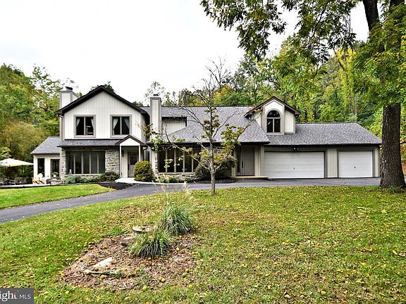 Secluded rustic estate on 6 acres nestled between historic Isabella Furnace and Rose Cottage in Wyebrook. Custom-built contemporary home (3 BR, 3 ½ baths) has a very flexible floor plan allowing for an in-law suite that’s fully wheelchair accessible; office or bedroom upstairs or down; formal dining room or family room; whatever suits your needs. Three wood-burning fireplaces (including master bedroom) and year round sunroom with split wall mount HVAC and woodstove. Upstairs master bedroom has maple hardwood floor and downstairs has recently installed Hickory laminate engineered flooring. The two master baths have large whirlpool tubs and tiled showers. Spacious three car garage. Fish, swim or float, even ice skate, if it’s cold enough, on the ½ acre pond with your own white sand beach and stone fire pit. Pond is stocked with largemouth bass, catfish, bluegills, sunfish and Chinese grass carp for vegetation control. Watch a great Blue Heron stalking fish in the pond or fly out of Perkins Run Creek as you cross the bridge coming in the driveway, or a red-tailed hawk dive for its dinner in the pond. Listen to the frogs serenading at night from the large two-level flagstone patio. Original stable and paddock removed in 1992 but plenty of space remains for your horse, vegetable garden and fruit trees. All major systems (HVAC x 2, well pressure tank x 2 and hot water heater x 2) all new since 2020. New paint inside and out 2021-23. New roof by Impriano 2018. Septic system cleaned and inspected every even-numbered year. Fireplaces and woodstove all cleaned and inspected this spring. Wyebrook’s notable stone walls (ca 1893) along the road restored by W. Nantmeal historic commission and private donations. Just over 2 miles to boating, kayaking and fishing at Struble lake; 386 acres owned by the state and managed by the PA Fish and Boat Commission. During spring, summer and fall you’ll see green looking out every window. This is truly a distinctive property. If you’re looking for woods, streams, land, nature and privacy, you’ll love it here. One owner since 1979.