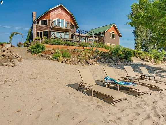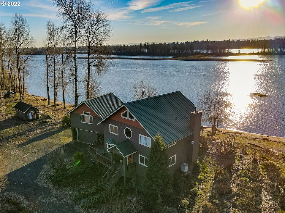 Create Your Private Estate with SPECTACULAR RIVER & CITY LIGHT VIEWS. Over 600' of amazing sandy beachfront on the magnificent Columbia River! 5+ acres includes those coveted Tidelands that make the beach truly YOURS! First time on the market in almost 75yr. Main house has 4 bdr,3.5 ba, wood floors, ceils & wainscoting. Guest suite in lower level. Separate Apt w/kitchen & bath. Dock is permissible! Just 30mins to PDX. See beach video!