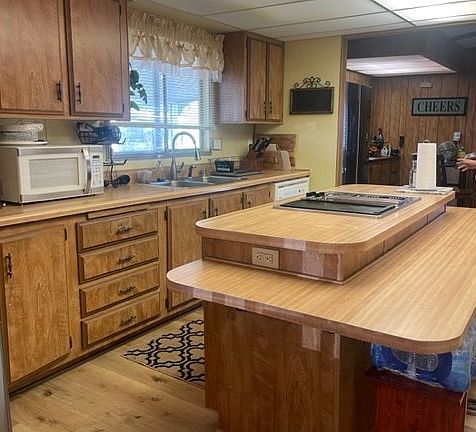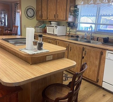 55+ Don't miss out on this oversized home. This property has a new roof, new heat pump and water proof laminate flooring through out. It offers 3 bedrooms, 2 bath and an additional office space. Entertain your company by the wet bar and enjoy cooking in the open kitchen or you can enjoy the private covered porch on the front of the house. Additional storage in the shed in the back of the extra deep carport.
