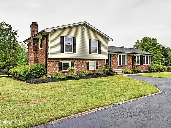 Wow! Immediate Occupancy – Spacious like new completely renovated 4 bedroom, 2.5 bath three story home with finished basement too. Over 2800 sq ft. of beautifully finished living space. Over $141,000 spent on renovations (see list attached)! Located on a wonderfully landscaped 1.42 acre corner lot with spectacular mature trees front and back! Approximately 1 acre of park like rear yard is 4 board fenced with mesh perfect for safety of kids and pets. A circular driveway welcomes all of this beautiful low maintenance home. Step inside to an open floor plan with dining room open to an oversized eat-in completely renovated and stunning kitchen with granite countertops, long center island breakfast tbar easily seats 5+, new cabinets, flooring and lighting. The big kitchen with large French door opens to a huge multi windowed 22 x 23 family room with access to big 20x16 deck. A convenient new half bath is located off the family room. Step upstairs to three spacious remodeled bedrooms with new floor coverings, lighting and completely updated bath. Just down a few steps to the main first level of the home is a magnificent 23 x 26 primary suite beautifully renovated with charming fireplace, new floor covering and lighting plus crown moldings and private patio. The huge double rack primary closet is unbelievable. A completely new renovated primary bath with designer double size tiled walk-in shower, beautiful vanity and private water closet. All this is very private. A few steps down to a huge 22 x 21 designer plank tiled game room, laundry room and storage closet. This lower level walks out to an oversized garage with a big paved parking lot. To top it all off the backyard is beautifully landscaped and for fun offers fantastic above ground 24-foot swimming pool with attached sundeck. Top rated Oldham Co Schools and only 10 minutes to Louisvillle!Call today for your private showing.