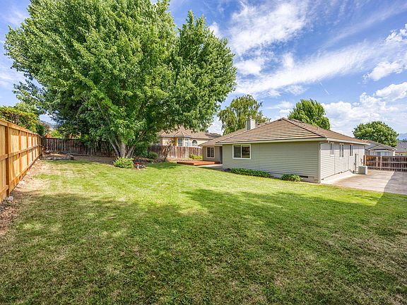 One-level home in East Medford's popular Lone Pine School District! The layout features large windows, vaulted ceilings, and a gas fireplace in the family room. Kitchen offers great storage, lots of counter space, and a breakfast nook overlooking a private backyard. Spacious primary suite includes a walk-in closet, double sinks, and walk-in shower. Step outside to a park-like yard with covered patio, deck ready for a hot tub, and plenty of space to relax or garden. Gated RV/boat parking (approx. 14' x 60.5') with 30 amp hookup. Updates in the last couple of years include new carpet, fresh exterior paint, and water heater. Just blocks from Lone Pine Elementary, parks, and shopping.