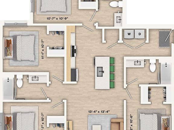 Elegant quartz countertopsIn-unit laundryStainless steel appliancesWood-style flooring