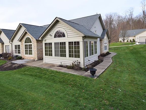 This beautiful patio home is move-in ready & offers true, one-level-living without compromising on space. You'll love the cathedral ceilings, open floor plan & tasteful flooring. The spacious living room features a remote operated gas fireplace & beautiful palladium window. French doors lead to the charming sun room framed by windows providing natural light. The living room is open to the dining room, great for entertaining. The tasteful kitchen boasts ample cabinetry, solid surface counters, accent lighting & includes all appliances. A wall of cabinets offers a serving counter & a bar height counter offers space for casual dining. Solid French doors open to the charming den w/ palladium windows making a great office or guest room. The en suite master w/ cathedral ceiling features a large master bath w/ double sinks, shower & walk-in closet. A 2nd bedroom is also offered as well as a 2nd full bath. A 2 car garage, flower garden, small patio & great community amenities are a plus!
