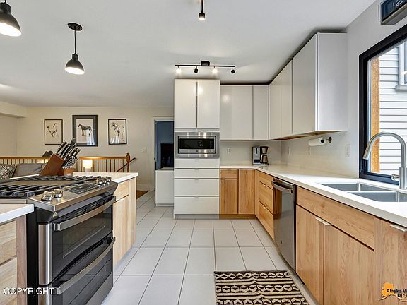 Scandinavian simplicity is reflected throughout this updated home in Old Turnagain. Stunning kitchen cabinetry, sleek, clean counters, & a sun-filled great room open to the huge sunny deck. Bedrooms, baths, entertainment & workspaces on each floor offer multigenerational comfort. The expansive primary suite w/dressing room features laundry, & private south deck. The upstairs family room enjoysstreaming sunshine, sunny nook for plants or people, multiple seating areas, vaulted ceiling and inviting tile fireplace. The updated entry way features a wonderful glass door system with two opening side panel windows to grab all the south sunshine possible. A large gear room with space for dog kennels, food storage as well as clothing & gear storage, gives access directly to the private cedar-fenced back yard, to the garage and to the main-level. The rear deck offers ample space for lounging. The huge backyard has beautiful old trees, a large storage shed, big lawn and room for lots of fun outside activities. The fully finished basement offers a huge recreation/game room, and an enormous bedroom with large window well and wonderful closet storage, full bath, and bonus room, potentially useable as a mother-in-law suite with the addition of a mini-kitchen. Solar panels on the south-facing roof help achieve lower cost heating bills. Main floor den is currently utilized as a bedroom but lacks a closet. Situated in the heart of Old Turnagain, at the center of the annual Turnagain Block Party, this home is just steps away from Lyn Ary Park and the Coastal Trail with access to parks, miles of multi-use trails, baseball fields, and tennis courts. Kid-friendly, pet-friendly, well-established, safe neighborhood. Variety of nearby schools (K-12) and just minutes from midtown amenities. Come home to 2901 illiamna Avenue!