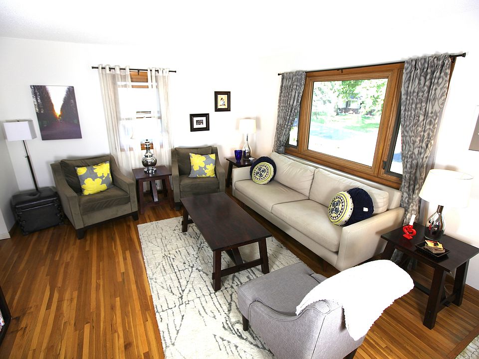 Completely updated MOVE-IN-READY home! Newer roof, vinyl siding and garage doors. Three garage stalls!! Remodeled bathrooms, laundry room and lower level. Lower level home theater could be easily converted to a great family room. Lower level is drain tiled w/sub pump. Stunning hardwoods throughout most of the home!! 3 bedrooms upstairs plus a bonus room that would make a great office, den, playroom or extra place for guests to stay. HUGE flat, fully fenced and private .23 acre lot. Large deck conveniently located off of the kitchen is perfect for grilling and entertaining. Homeowners have landscaped, added a retaining wall as well as patio/concrete in the backyard. Great location 1 block away from the Crystal/Golden Valley border. Home is close to highways (169/100/55/394), schools, parks, restaurants and stores. Walk to Dairy Queen, Dominos Pizza, CVS Pharmacy, Walgreens, VFW, Adagio and Peppertree Salons, Dollar Store, Cinema Grill (Movie Theater), VFW and more