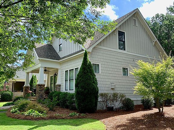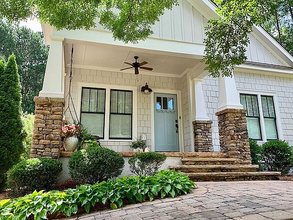Beautiful 3 bedroom, 2 &1/2 bath cottage on spacious wooded corner lot in National Village. Inside, you’ll find a beautiful open floor plan (1775 sq.ft), with plantation shutters and crown molding, hardwood floors throughout downstairs & stairway, and a downstairs powder room. The kitchen has quartz countertops, a reclaimed wood backsplash, under-cabinet accent lighting, a farm sink with industrial pull-down sprayer, a gas range with convection oven, and a walk-in pantry. The living room features a gas fireplace with built-in cabinets. The downstairs master suite has a large walk-in closet and a bath with double vanities, natural stone floor, glass shower door with seat, a separate water closet, a linen closet, and lots of drawers and cabinet space. Two upstairs bedrooms share a Jack-and-Jill bathroom with natural stone tile, a porcelain tub with subway tile surrounding, and a sink and vanity in a separate space. The larger upstairs bedroom features a walk-in closet and is perfect for a home office. Multiple additional upgrades include: a small upstairs bonus room that can be used as a playroom for kids or extra storage; wired for security system; satin paint throughout (not flat); upgraded light fixtures; TV outlets in living room, all bedrooms, master bath, and back porch; energy-efficient design, with a tankless hot water heater, spray foam insulation, recent HVAC system (2018) and termite bond. The home features a large carport (plenty of room for 2 cars and a golf cart) with sliding barn door, 2 ceiling fans, and a 24' x 4' storage room. A large, screened back porch, with grilling deck, provides relaxing outdoor living space. An additional outdoor storage room is perfect for golf clubs or tools. Even more storage is available in the crawl space. Additional exterior upgrades include stacked-stone columns on the front porch, black exterior window frames, shake shingle exterior siding with board and batten above. Bi-annual HOA dues of $1,619 (paid through July ‘22) provide the following fantastic amenities: all lawn maintenance and irrigation; weekly trash pickup; access to the Marriott's 2 salt-water pools, plus one indoor heated pool, indoor and outside hot tubs, dry saunas, exercise room, 8 clay tennis courts, 4 pickleball courts, complimentary golf on the Short Course and unlimited range balls at Grand National Robert Trent Jones Golf Course, 10 miles of nature trails, and access to fishing on multiple stocked lakes; and discounts at the Marriott restaurant, splash bar, and golf clubhouse. This is your chance for resort living in Alabama's greatest neighborhood! Owner is a Licensed Real Estate Broker in Alabama. REALTORS welcome (2.5% at closing).