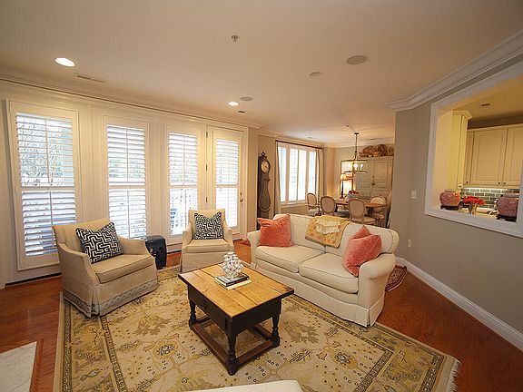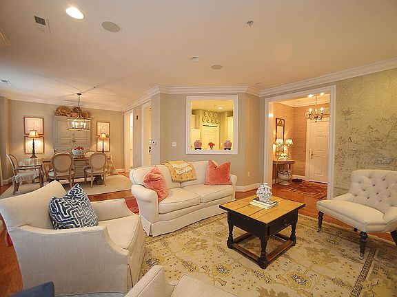 Exquisite condominium in the highly regarded Gardens on Glenwood. A beautifully appointed, pristine unit. Lots of light.9 foot ceilings. Large kitchen with a wealth of storage. Gas stove Wonderful built-ins in walk in closet. Enjoy the spacious highly desired covered balcony. Easy living. Go to the meditation garden, the cutting garden, exercise room, and pool in this quiet, lovely area.The manicured landscaping is beautiful and immaculate. Ample storage unit in garage and 2 parking spots. Stroll across the bridge and enjoy great restaurants, coffee shop, Harris Teeter, and more. This is an amazing place to live! This is a must see!