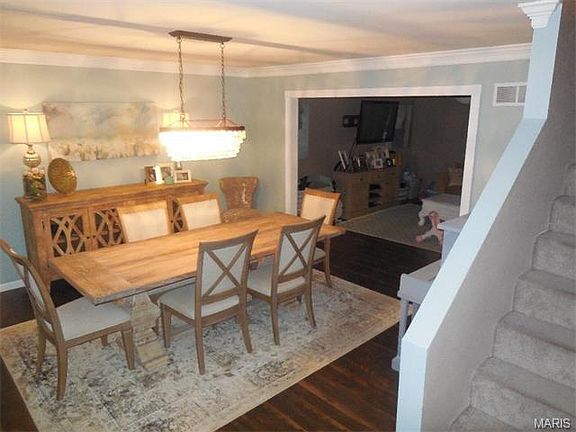 You will be WOW'd the minute you walk through the front entry. You'll be greeted by the beautiful chandelier that lights up the special features in the large dining room which include crown moulding and upgraded veneer wood flooring that flows throughout the main level. The updated kitchen has plenty of counter space for preparing meals, a center island with bar stools and an abundance of cabinets for storage. The stainless steel appliances make this all electric kitchen a chef's dream. The spacious open floor plan is great for entertaining! Sliding glass doors take you out to your private deck with a view of trees, land and cows! Yes, I said cows! The main floor powder room has been recently updated with granite counters, new fixtures and more. The master bedroom suite is a charmer with a nice size walk-in closet and a large bathroom with a separate soaking tub and shower, double bowl vanity and more. The lower level has an egress window, sump pump and rough in for a bath Covered Porch, Deck, Lake Access