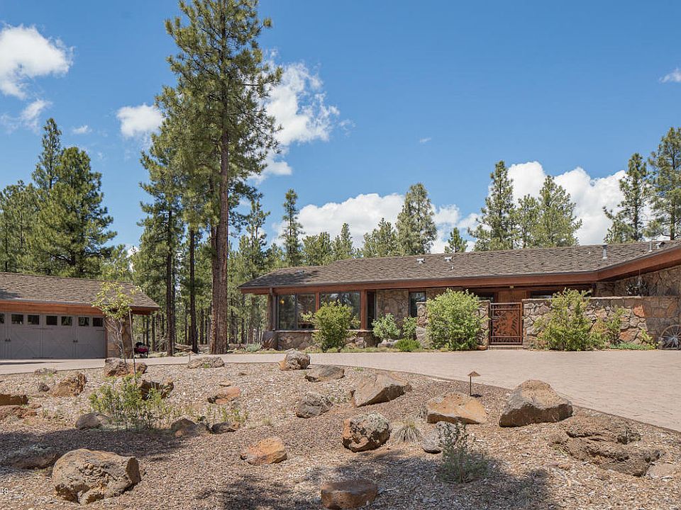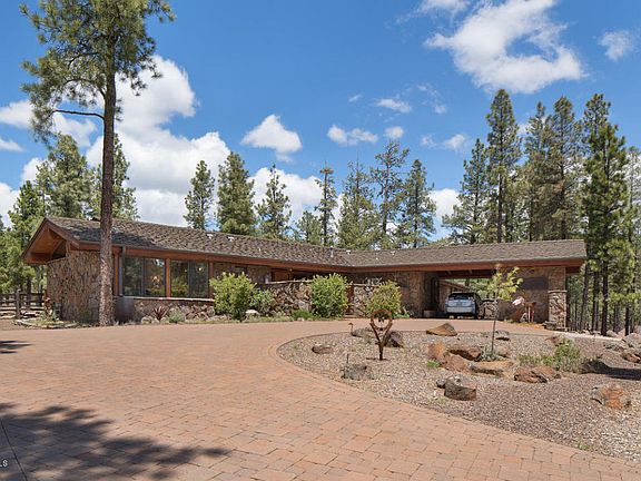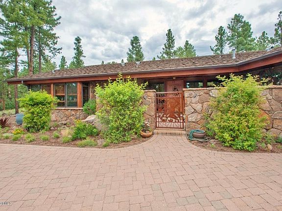 State of the art green home offers easy living in the forest. Architecturally designed by Sedona's Don Woods/ crafted with the best recycled, natural and nontoxic materials, beam construction with local block and Navajo Flexcrete give the home quiet character and thermal efficiency(See Attach Document for Wall Thickness Wow!)Passive solar greenhouse warms the home and active solar electric feeds into the grid, 3 bedrooms have private bath and patio access. Lovely great room with fireplace also opens onto the patio. Window seats for casual dining and large formal dining room for entertaining. Built-in book and display cases in office. Large master suite with plenty more built-in cabinets, drawers and window seat. Attention to detail in all the craftsmanship!