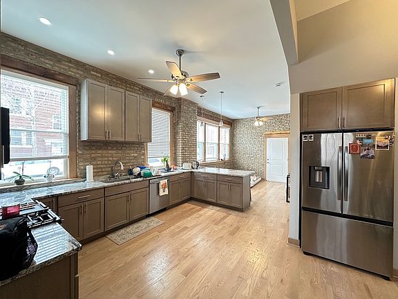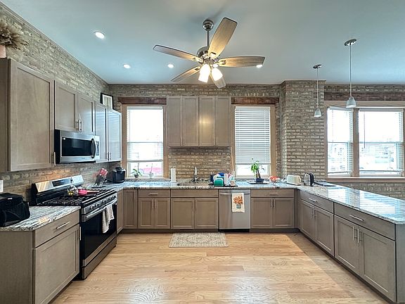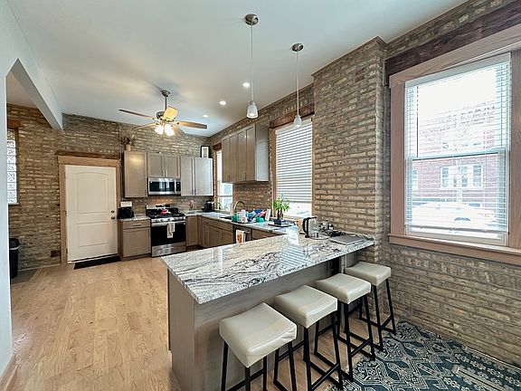 We now offer virtual video tours of all of our apartments! Schedule a virtual tour and rent this apartment from the comfort and safety of your home! Apply online! Excellent three bed, 2.5 bath gut rehab in Logan Square features beautiful eat in kitchen with granite countertops, stainless appliances, gas oven/range, dishwasher, microwave, upgraded fridge, hardwood floors, ceiling fans throughout, spacious living room, separate dining room, 9' tall ceilings, large bedrooms, great closet space, tons of sunlight, new bathrooms with stone vanities, oversized showers with seamless glass doors, onsite laundry, easy street parking, too! Only 2 blocks to the Blue Line! Won't Last Long!
