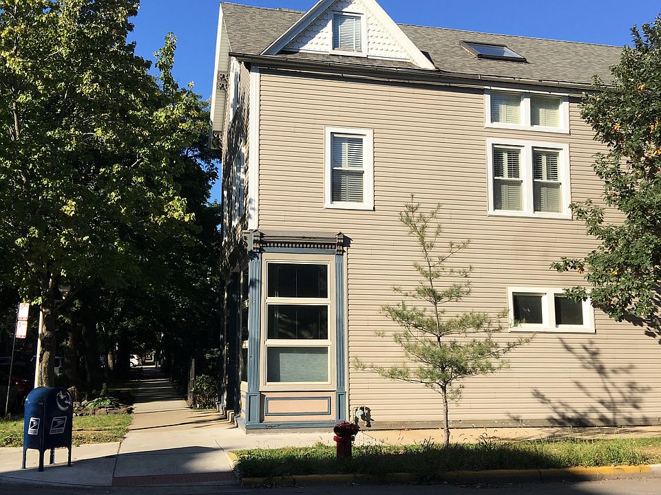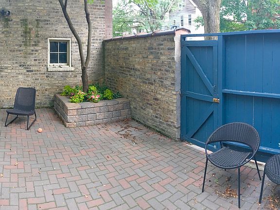 1500 sq foot 2 BR, 1 BR + den and enormous living/dining space with 14' high stamped tin ceiling in vintage, owner-occupied building near the El, bus lines, shopping, and excellent elementary school. Easy street parking. Unique space in a corner building with plenty of sun in living areas, quiet bedrooms away from the street. Fenced patio. Laundry access from unit. Freshly painted. New floors. Pets may be negotiable. Some storage space available. Free laundry in building. Tenant pays gas and electric. No smoking. Application includes credit check.