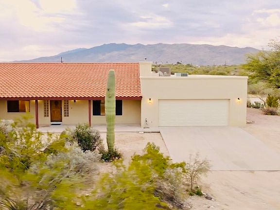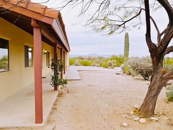 Range priced $760,000-$770,000. See drone video for exterior of property and horse facilities. This gorgeous ranch on 4 acres is nestled in the heart of the desert with amazing mountain views! The welcoming and freshly paint interior spaces throughout the home are perfect for gatherings and entertaining. The kitchen features Mountain Views from the kitchen sink and new appliances! Guest quarters include two private entrances, open living area, bedroom and bathroom with walk in closet. The horse facilities are complete with lighted arena, tack room and plenty of space for additional livestock. After a long day at the ranch, relax on the front porch with a beautiful Arizona sunset. Just minutes from Saguaro National Park, hiking and horse trails.