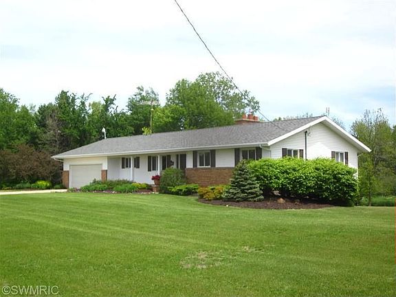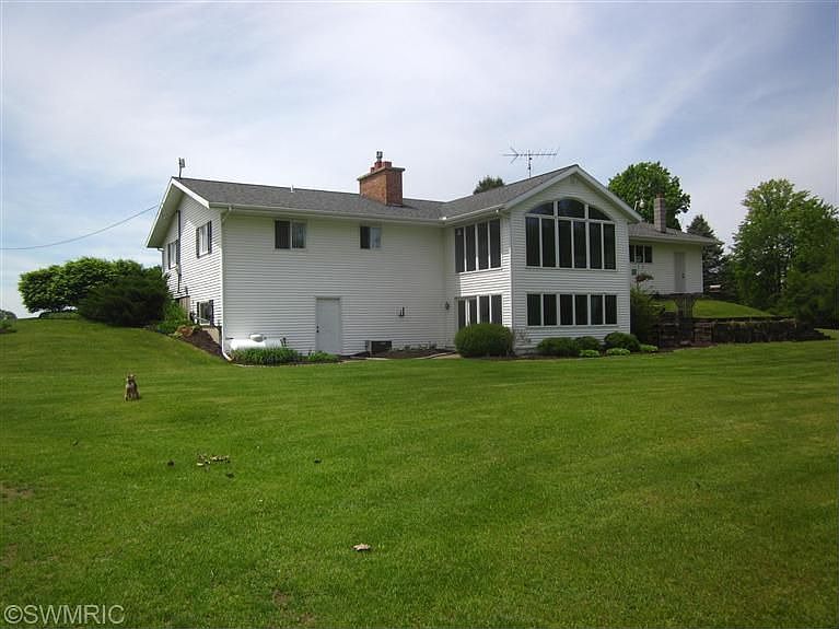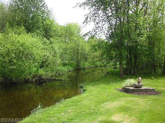 27 acres & a 1/2 mile long frontage of Dickerson Creek frontage.This home was built in 1972 but has had major remodeling changes.Gourmet kitchen w/cherry cabinets,quartz countertops,hickory flooring,GE Profile stainless steel appliances,ceramic tile,center bar,double oven & more. Open to dining area open to large living w/marble gas insert fireplace,built in entertainment center open to 4 season sun room w/cathedral ceilings & many windows overlooking the back yard & creek.3 bedroms on the main floor w/one being the large master w/3/4 bath & walkin closet.Also full bath & large laundry room w/open lockers off from 2 stall attached garage.Walkout level features the large open family/rec/all season sun room w/brick wood fireplace & kitchenette.Full bath, mechanical room and storage room.Home has aluminum siding & aluminum soffits,ADT security system,extra 24X24 garage.North end of property has a 5 acre field currently being leased.Property has a drainage easement for local farm drainage