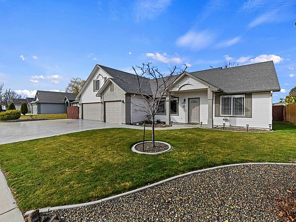 One of south Nampa’s premier neighborhoods; extensive common areas & walking paths. Seconds away from Nampa’s seven-mile walking/bike path and Wilson Ponds just around the corner. Original owner home with outstanding features that make it a GREAT VALUE! Kitchen remodeled in 2018 with custom cabinetry, quartz countertops, LVP flooring, & center island. Bathrooms remodeled with new sinks, fixtures, countertops, LVP flooring and refinished tub/showers. Desirable split bedroom plan with vaulted areas in the spacious living room and primary bedroom. The upstairs bonus room can be used in so many ways; a craft area, work-out space, home office, family room, quiet retreat, or ????. Outdoors has a large, fully fenced backyard with concrete curbing, full sprinkler system, mature plants, no subdivision rear neighbors and an extended, partially covered patio to enjoy the Idaho weather. RV parking area that extends to a road mix and gravel area and a 12x10 storage shed. So much to see, too much to list!!