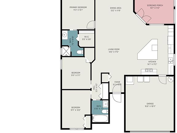 - Breakfast Bar, Ceiling Fan(s), Eat-in Kitchen, Open Floorplan, Primary Bathroom - Shower No Tub, Solar Tube(s), Split Bedrooms, Vaulted Ceiling(s)