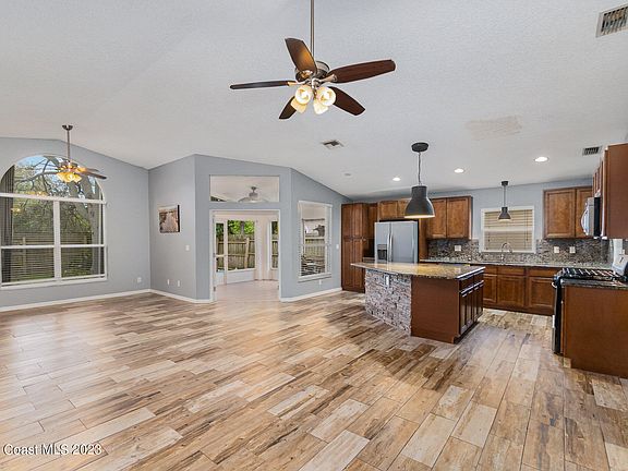 Welcome to 2901 Saint James Lane, a stunning 3-bedroom, 2-bathroom home situated on a cozy lot in the heart of Melbourne. This well-maintained gem is perfect for families and retirees alike, offering modern amenities & convenient access to nearby attractions. Step inside and marvel at the open kitchen, complete with stainless-steel appliances, an oversized island with ample storage, a built-in wine cooler, 42' cabinets, and elegant granite countertops. The contemporary ceramic tile flooring adds an extra touch of sophistication to this space. Low HOA fee of just $225/year. Just a short distance away, you'll find the beautiful Wickham Park, boasting numerous recreational activities, such as swimming lakes, disc golf, volleyball, soccer, and more. Don't miss your chance to own this incredible property located at James Landing. Make it your new home today and start creating cherished memories for years to come.