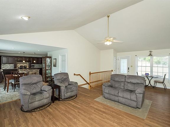 - Cathedral Ceiling(s), Open Floorplan, Walk-In Closet(s), Kitchen Island, Custom Cabinetry, Granite Counters, Pantry, Kitchen/Dining Room Combo