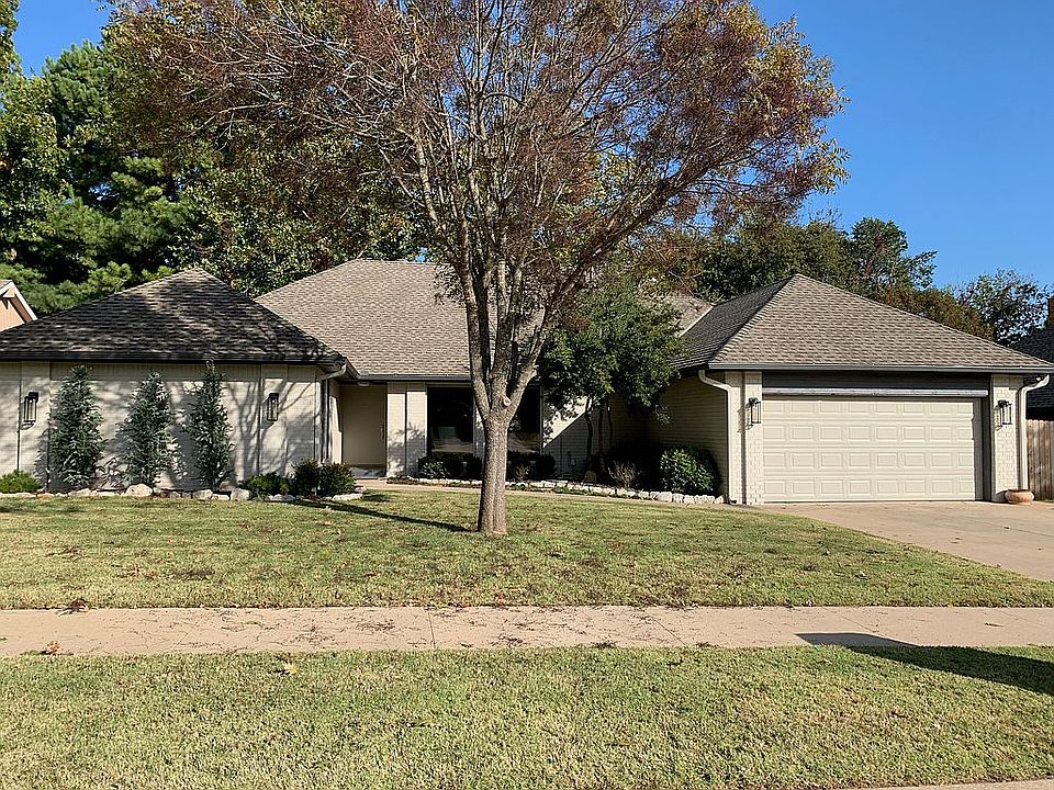 Great location with designer upgrades & filled with light throughout! Open floor plan with large windows & skylights, high ceilings, large kitchen with granite, stainless steel, gas cooking. New everything: paint, carpet, fixtures, hardware, fence, stone walkway, sprinklers, gutters, landscaping, sod, slate on entry porch and security system. Large master suite with enlarged master closet, electric powered built-in ironing board included. New double vanity with marble top in master bath. New laundry room added with tile, cabinets & sink. New hot water heater, new gas line & gas downdraft cooktop. Backs up to greenbelt with large yard, covered patio and shed. Extremely close to The Trails Golf Club on quiet street. Contingent with kickout.