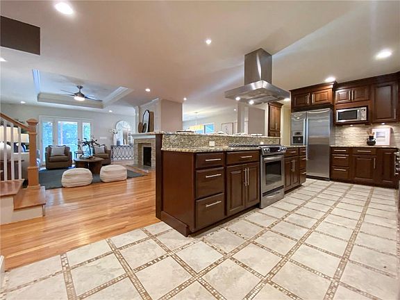 - Custom Cabinets, Kitchen Island, Pantry, Stained Cabinets, Vaulted Ceiling(s), Walk-In Closet(s)