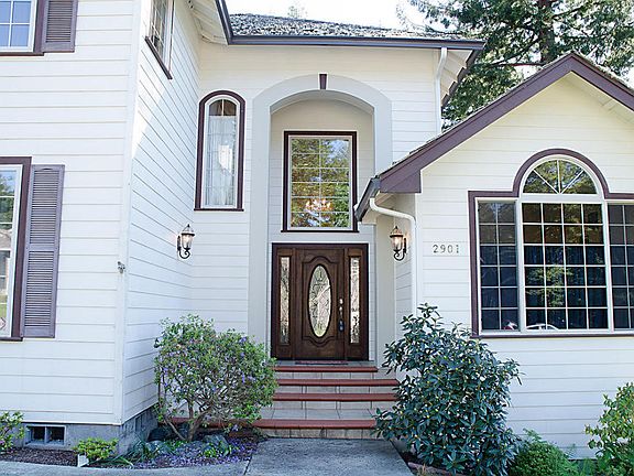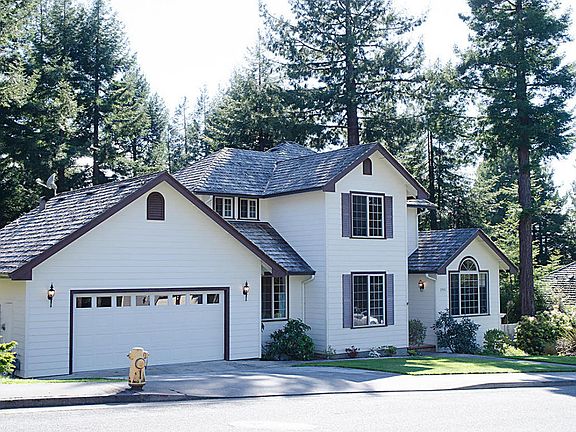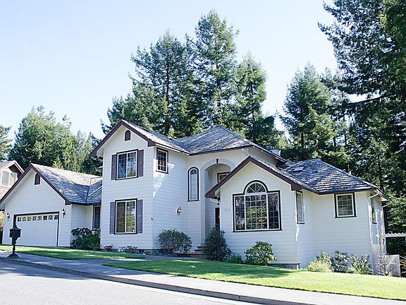 Beautiful two story, light-filled home built by Ray Wolf in a prime location along a Redwood/green belt. It features a large, open living room with high ceilings, fireplace, many windows (with views), and a dining room. The 2nd story balcony overlooks the living room supported by large columns. The large kitchen has black granite countertops, an island, lots of white custom cabinetry and even a second dining area. A large Trex deck spans the south side of the home with a vista of the landscaping and forest. The Master Bedroom patio door opens up to the deck. There is a 380 sq ft. basement that is a newly finished livng spac. (Sq Ft not included in the main house.) The property shows a lot of love has been taken to develop and care for it. The 2 car garage is finished in painted sheet rock
