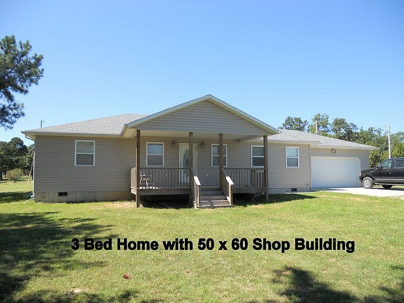 This Ranch Style home has a lot to offer! It is a 1440 sq ft 3 bedroom, 2 bath home. Two of the bedrooms are set up as Jack and Jill with the main bath in between. On the other side of the home, is the master suite with a full bathroom and large closet. The heart of the home has a great size living room, dining room with full functioning French Doors, and a kitchen with a pantry. There is a mud room, with extra space, a w/d hook up, and utility closet, on the way out to the attached 2 car garage. Now to the really great features! This home is located on 3 acres on a quiet country cul-de-sac. It has a 40X60, 2400 sq ft, shop building with large sliding doors. The shop has a mostly dirt/gravel floor and its own meter for electricity. The previous owner used for putting his big rig in. A nice covered porch and long extended patio slab that goes the length of the home great for those outdoor gatherings. New roof in 2017 with leaf guard gutters. Don't miss out, schedule your showing today!