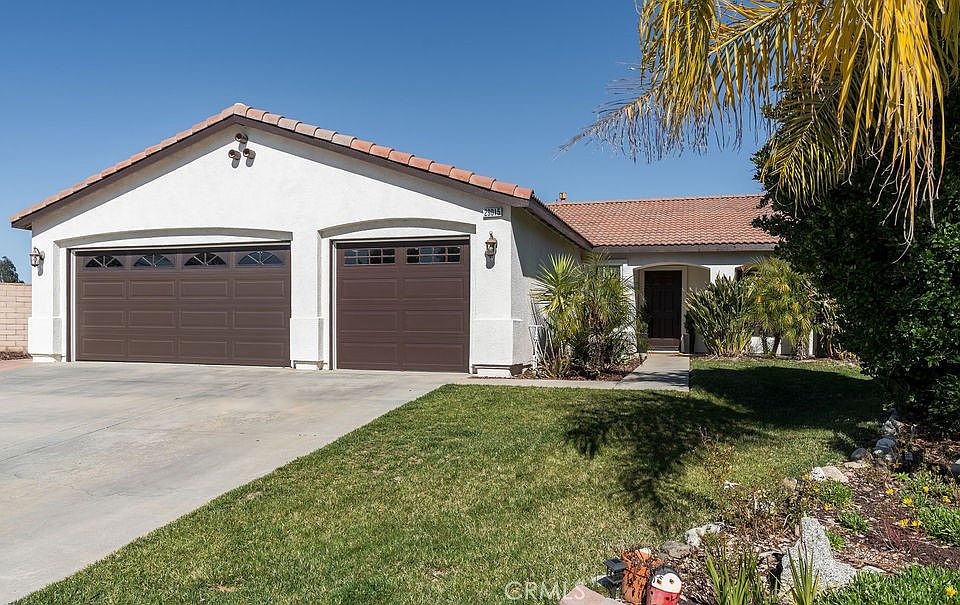 Welcome home to this charming single-story residence nestled in the heart of Menifee, CA. Boasting three bedrooms and two bathrooms, this abode offers comfort and style. Step inside to discover sleek tile flooring throughout, providing easy maintenance and a contemporary aesthetic. Relax in the spacious primary bedroom featuring an inviting accent wall, adding a touch of personality and warmth to the space. With two additional bedrooms, there's plenty of room. And the den is perfect for creating your home office, play room, the possibilities are endless. Outside, enjoy the newly laid sod in the backyard, perfect for outdoor gatherings or leisurely afternoons. The upgraded sprinkler system ensures lush greenery all year round, creating a serene oasis to call your own. With a lot this large theres plenty of blank space for creating your dream backyard.