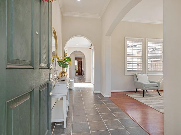 First time on market, your dream home awaits in the heart of Eden Shores. Nestled in a cul-de-sac, this residence has soaring ceilings, exquisite honed slate tile floors, and crown molding. The courtyard features a fountain and enjoyable sunsets and is next to the formal receiving room and dining area, creating an ideal setting for both intimate gatherings and grand entertaining.