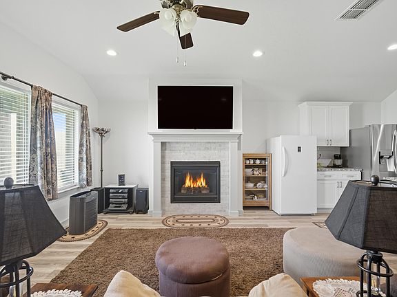 Welcome to 2902 133rd St in Lubbock, Texas, a stunning recently built home in the highly sought-after Viridian Community! This 4-bedroom, 2-bathroom, 2-car garage stone and brick beauty spans 1,897 square feet and offers not just a house, but a lifestyle of comfort and convenience. Step inside and be greeted by an inviting entry hall that leads into an open concept living space where the kitchen, dining, and living room flow seamlessly together. Perfect for both entertaining and everyday living, you'll always be part of the action. The chef's kitchen is thoughtfully designed with shaker-style cabinets, gorgeous granite countertops, a large island with built-in sink and dishwasher, stainless steel appliances, and a spacious walk-in pantry. The primary suite is your private retreat, featuring a spa-like bathroom with a separate toilet, walk-in shower, and an oversized walk-in closet that makes organization a breeze. But that's not all, this home comes with incredible bonus features! A mounted LG OLED TV conveys with the property, perfect for movie nights or big game days, along with a loft bed featuring a connected desk underneath, an ideal setup for work, study, or maximizing space. Don't miss your chance to own this gem in Viridian, where style, function, and extra perks come together to create the perfect home.